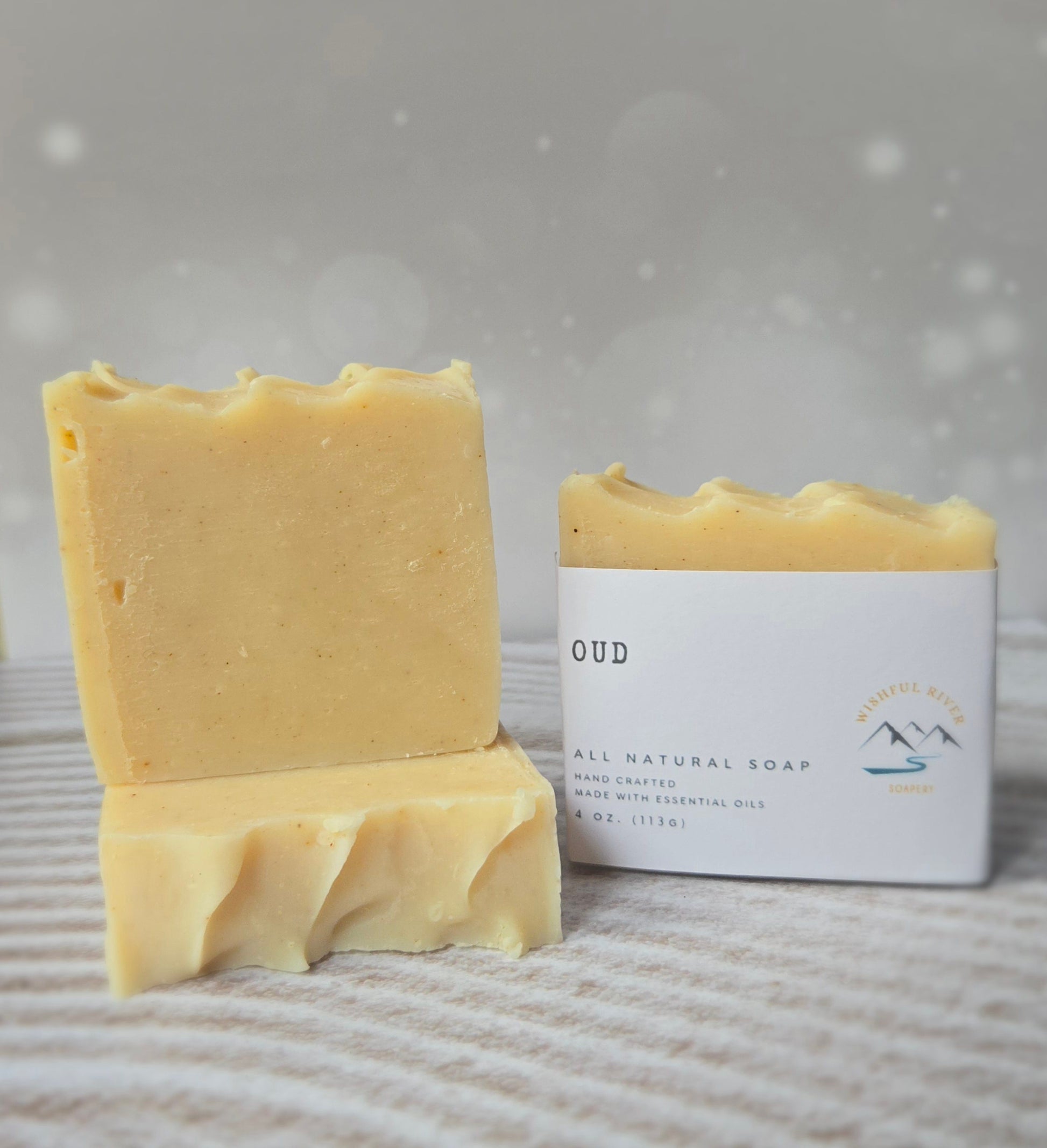 Introducing Oud soap. This soap blends nourishing plant-based oils and butters with the deep, resinous aroma of oud; known for its rich, smoky warmth and quiet sophistication. Oud’s natural scent, revealing hints of leather, incense, and a soft sweetness beneath the surface.